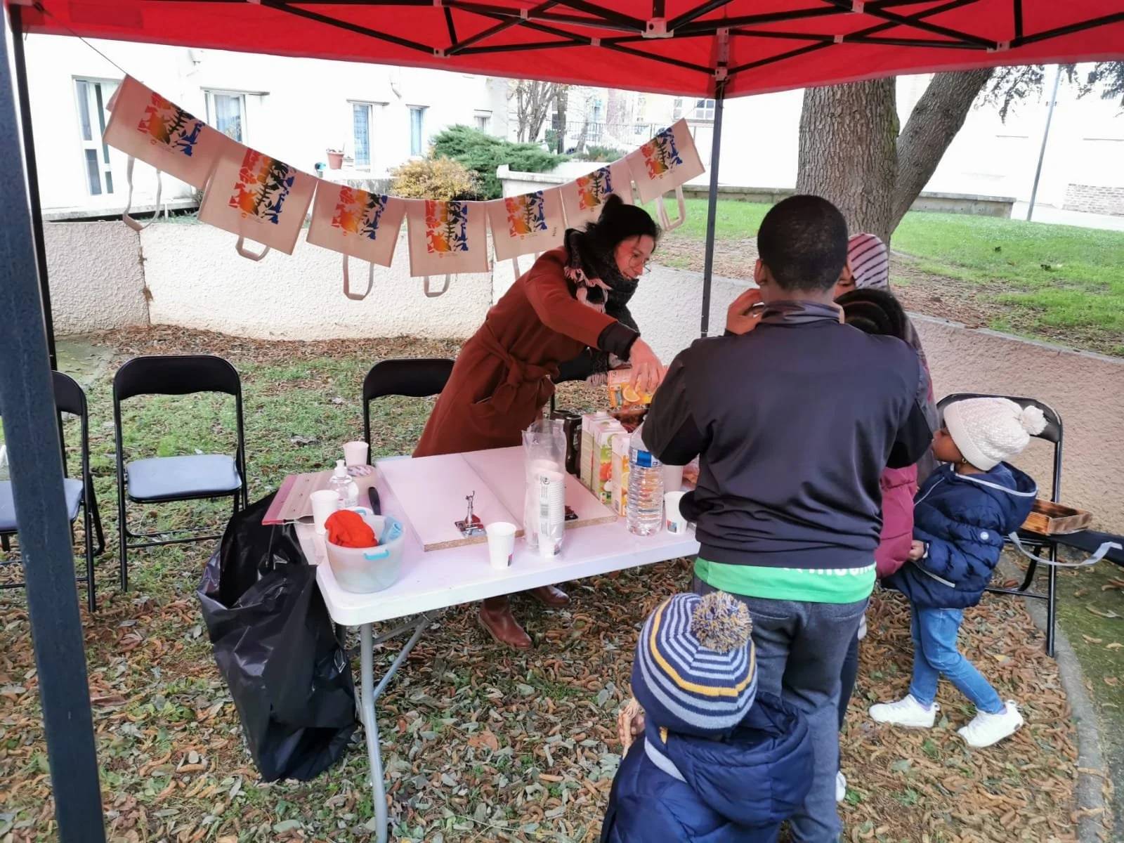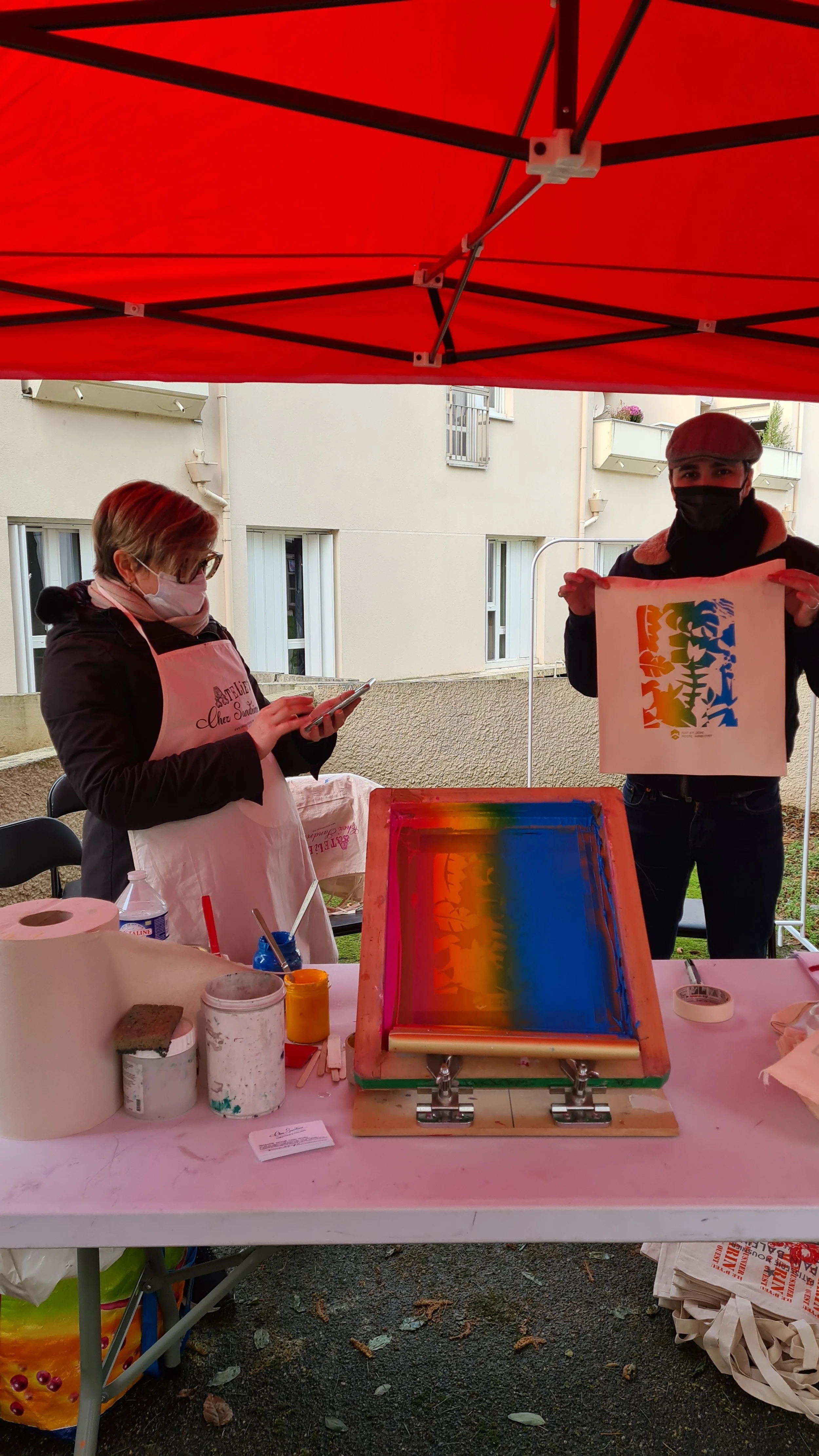 Le projet a été inauguré en décembre 2021, autour d’un atelier de sérigraphie où les habitants ont pu réaliser des tote bags reprenant les motifs des fresques.