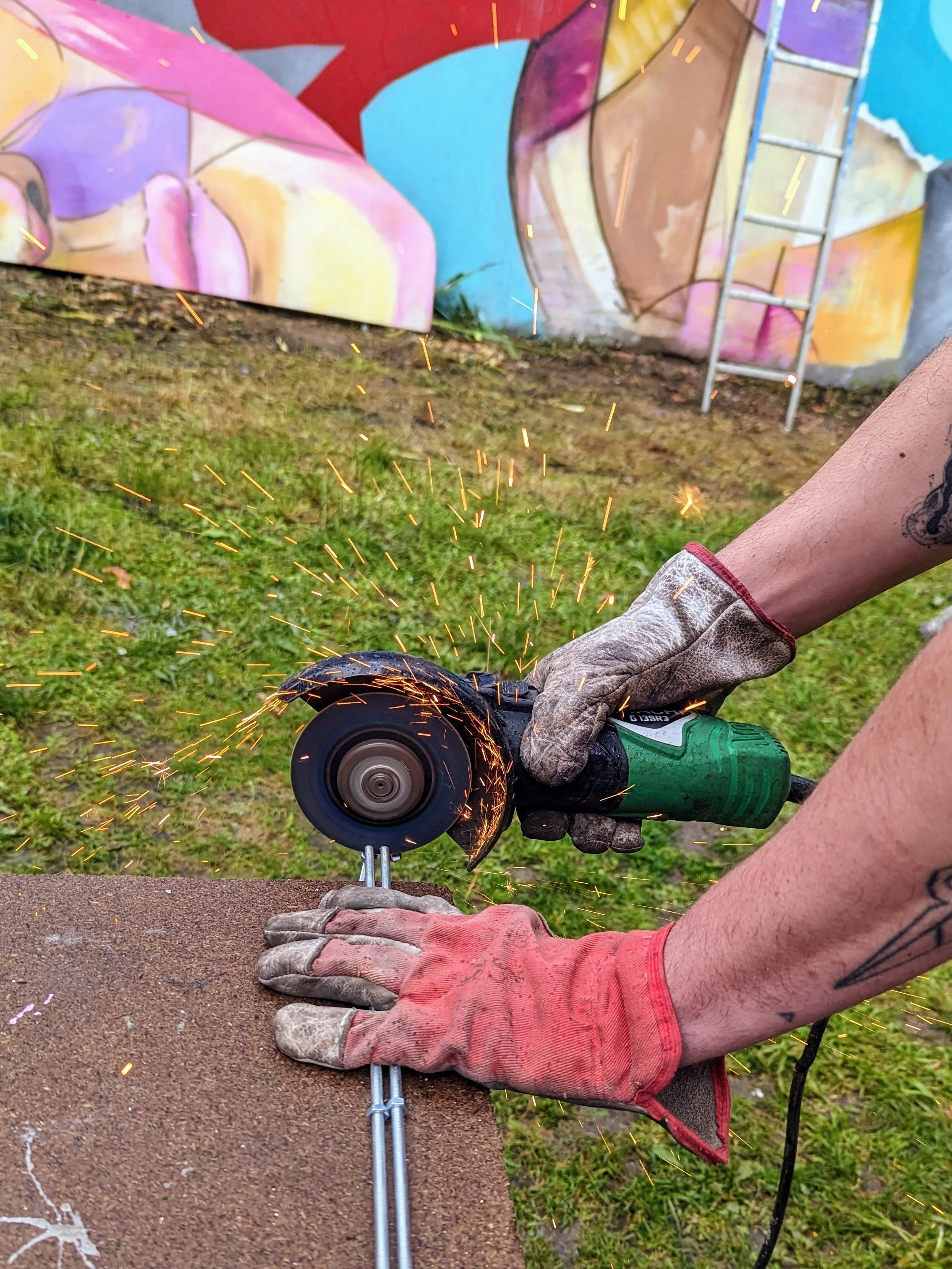 En juin 2023, nous avons été invités par le Festival Permis de démolir pour réaliser une oeuvre grand format à huit mains avec le duo d’artistes Ensemble Réel. Chassés de chez eux par le chantier du Grand Paris, Candice et Haïm ont décidé d’organiser une ultime exposition immersive avant la destruction de leur maison. Touchés par leur démarche, nous avons tout de suite répondu présents avec cette installation intitulée « Moment suspendu ».